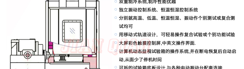 您好!歡迎光臨廣東劍喬試驗設備有限公司官網!主營:振動臺,振動試驗臺,電動振動臺,高頻振動臺,沖擊試驗臺